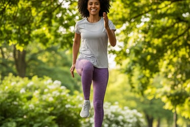 A caminhada no lugar é um exercício simples, mas extremamente eficaz para aumentar a temperatura corporal e ativar a circulação.