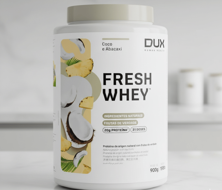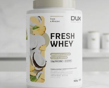 Fresh Whey da Dux Nutrition é um suplemento proteico em pó elaborado com uma combinação de três tipos de whey protein — concentrado, isolado e hidrolisado — para atender tanto praticantes de atividades físicas quanto pessoas que querem complementar a ingestão diária de proteínas com um produto saboroso e nutritivo.